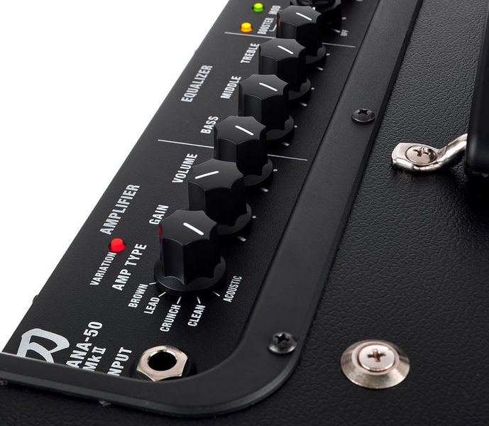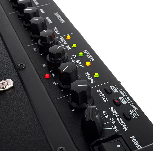 Contrôles: Amp Type, Gain, Volume, Bass, Middle, Treble, Booster/Mod, Delay/FX, Reverb, Master & Power Control, Sounds
