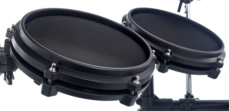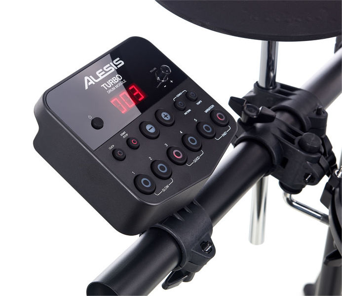 Kit de batterie électronique complet avec un module composé de 10 kits intégrés, 30 morceaux d'accompagnement, 120 sons, port USB/MIDI pour utilisation sur logiciel et un mode entraînement unique ! Ultra silencieuse : pads en peaux mesh, stable avec un rack en aluminium. La TURBO MESH est une batterie d'étude compléte et bien faite !