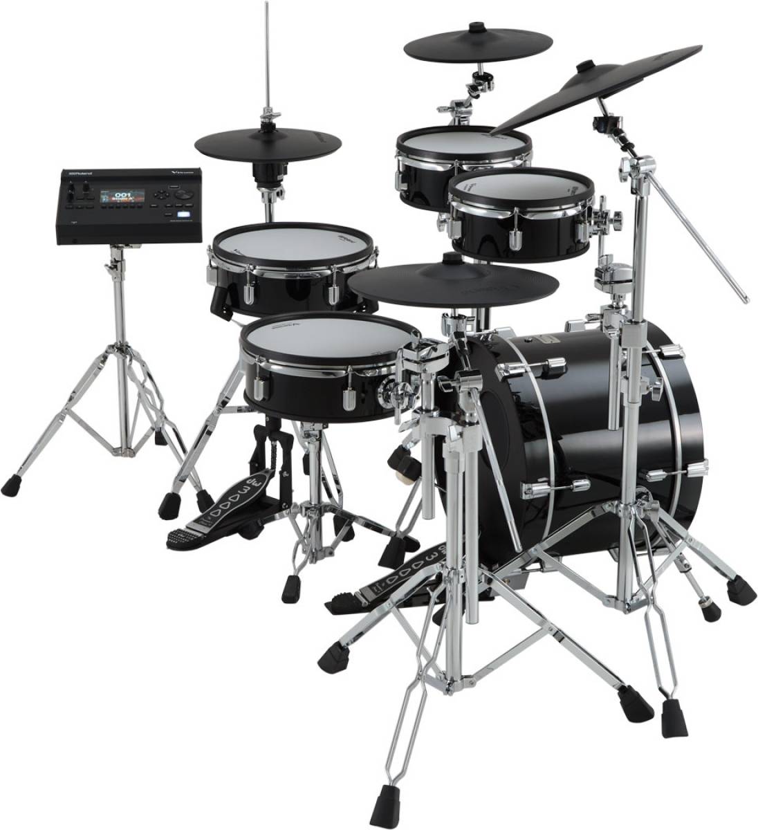 Il contient également de puissants outils dédiés à l'entrainement de tout les jours et aux jams, des composants améliorés et est capable de connexion sans fil pour accéder à nos extensions de sons et autres contenus V-Drums, sans cesse enrichis sur Roland Cloud.