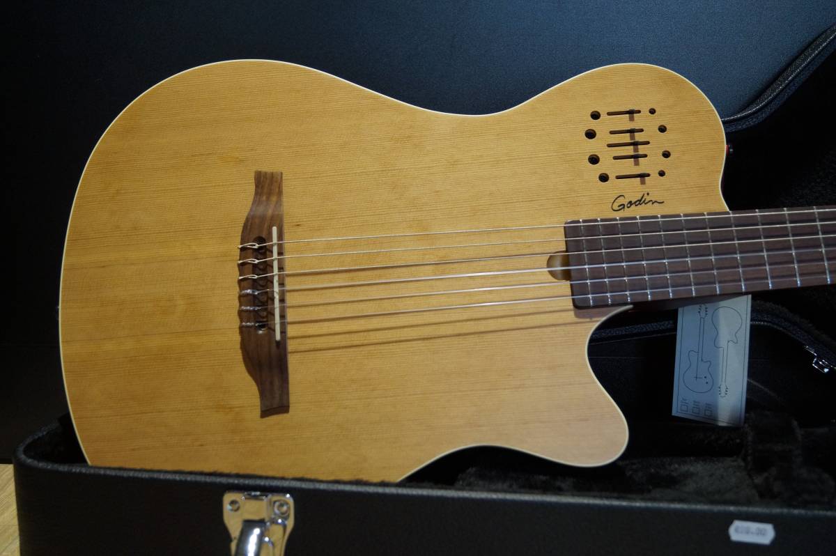 La Godin Multiac Encore est équipé d'une électronique EPM spécialement adaptée. Les deux micros (Under-Saddle-Transducer et Acoustic Soundboard Transducer) peuvent être mixés via le préamplificateur à deux canaux.