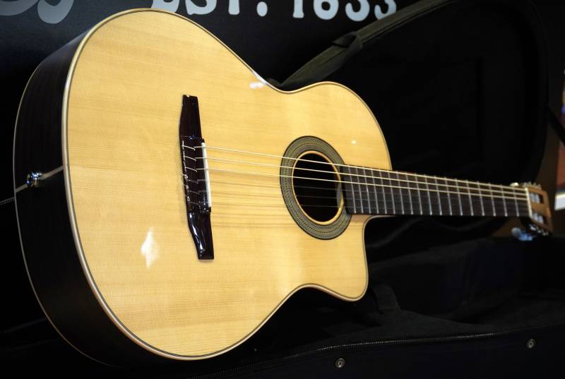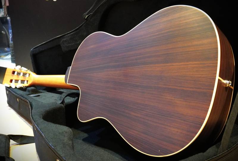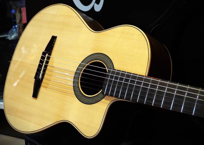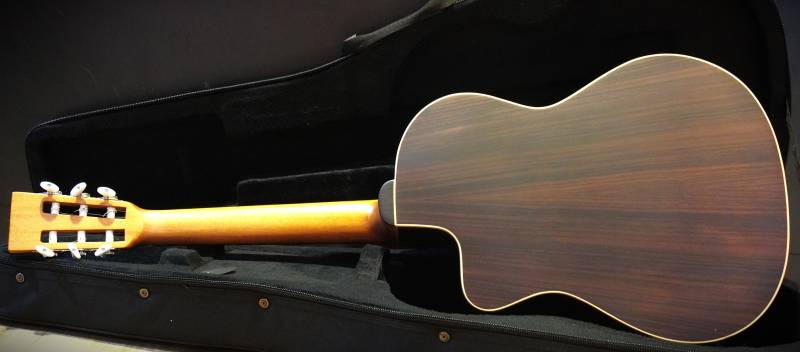 La table d'harmonie en épicéa apport la puissance d'une guitare flamenca, et le fond et éclisses en palissandre reprennent les graves et la sonorité plus chaude des guitares classiques. Parfait pour les musiciens qui cherchent un instrument polyvalent. Et facile a jouer avec son manche classique étroit en 48mm et ses 12 cases hors caisse.