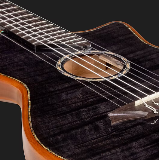 Le manche en acajou au profil C confortable, associé à une touche en ébène Amara radiusé et au Comfy Nut exclusif, procure une jouabilité fluide et naturelle, rarement atteinte sur une guitare nylon. Les sillets en os renforcent la brillance et le sustain.