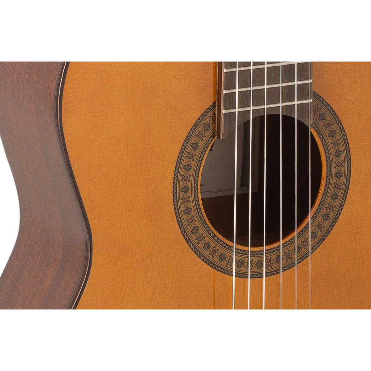 Conçue pour offrir une excellente expérience de jeu, la guitare Admira Juanita possède une table en épicéa contreplaqué qui assure une sonorité claire et équilibrée. Ses filets en bois sur la table et le dos apportent une touche d’élégance, renforçant la qualité perçue de l’instrument. Côté confort, le profil du manche garantit un confort parfait, tandis que le sillet orienté assure une meilleure tenue d’accord. Les frettes biseautées, soigneusement travaillées, évitent toute gêne lors du jeu et améliorent la fluidité du déplacement sur la touche.
