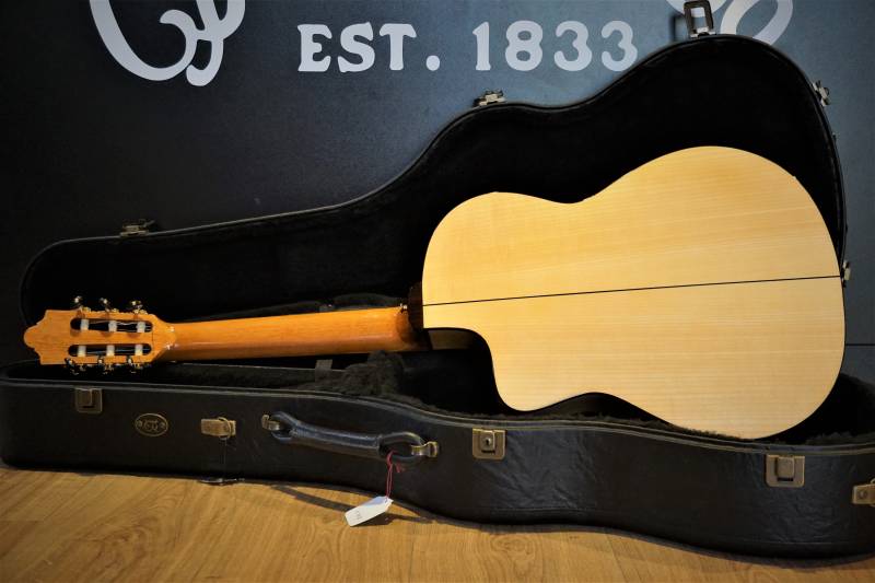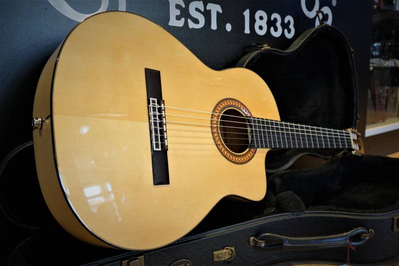 Ce beau modèle électro-acoustique destiné aux amateurs de flamenco présente un grand confort de jeu, notamment grâce à son pan coupé et une action des cordes très basse.