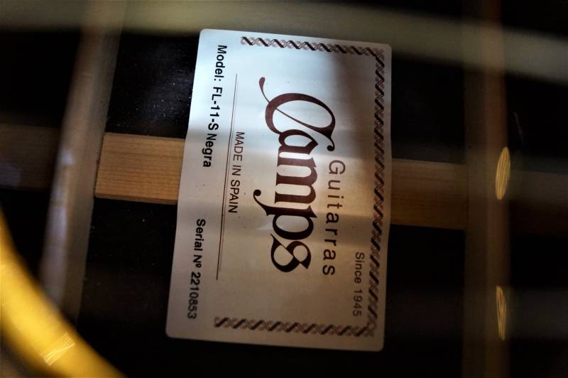 La guitare Camps FL11C NEGRA de Camps est une "guitare flamenca électro" professionnel avec cutaway fabriquée en Espagne avec des bois de grande qualité avec une table en épicéa massif, du Palissandre massif pour le fond et les éclisses, touche en ébène et Fishman Prefix Pro-Blend pour l'électronique.