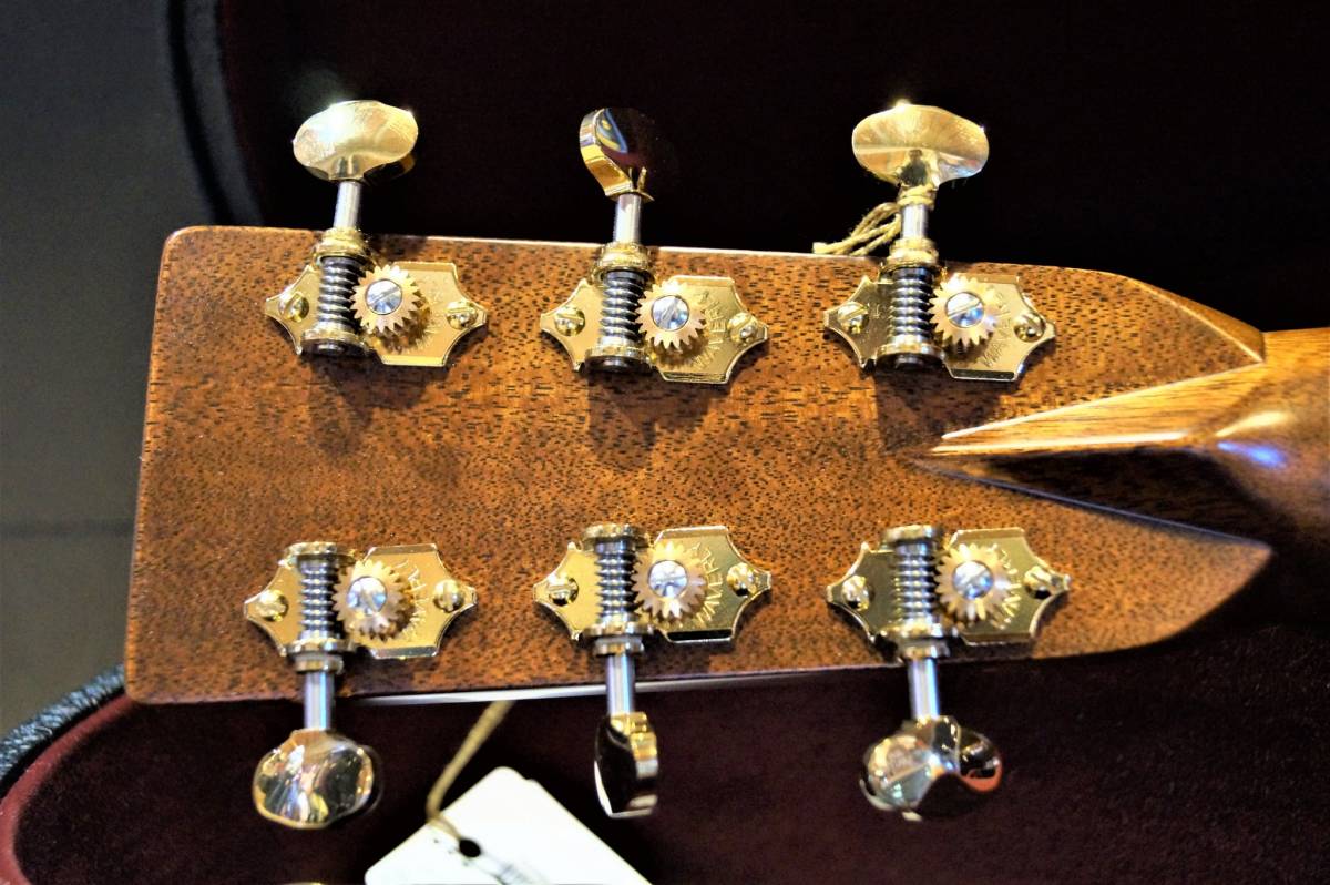 Le style et la classe ne sont pas en reste avec des filets en Erable européen flammé, des frettes et mécaniques dorées, et un logo style années 30 incrusté de perles.