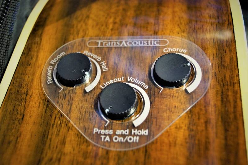 Trois contrôles permettent de mixer les effets, d'ajuster le volume de sortie et de de désactiver le système Transacoustic, et son utilisable avec la guitare seule ou dans l'ampli de votre choix.